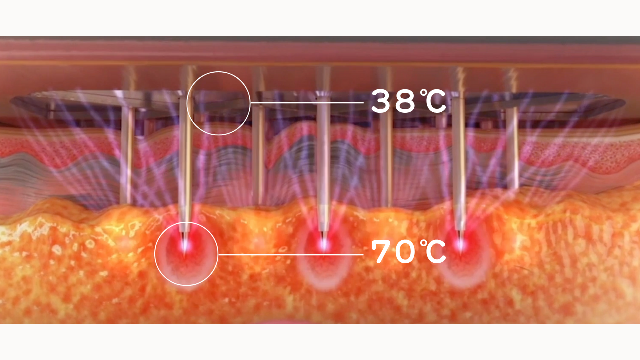 24本のとても細い針を皮下組織(深い層)まで刺して、針先からピンポイントに熱を与える施術です。針を使って熱を届けることで、お肌をしっかり引き締める効果が期待できます。また、細かい傷をあえてつけることで、肌が自分の力で回復しようと働きかけ、肌質そのものを整えるサポートにもなります。