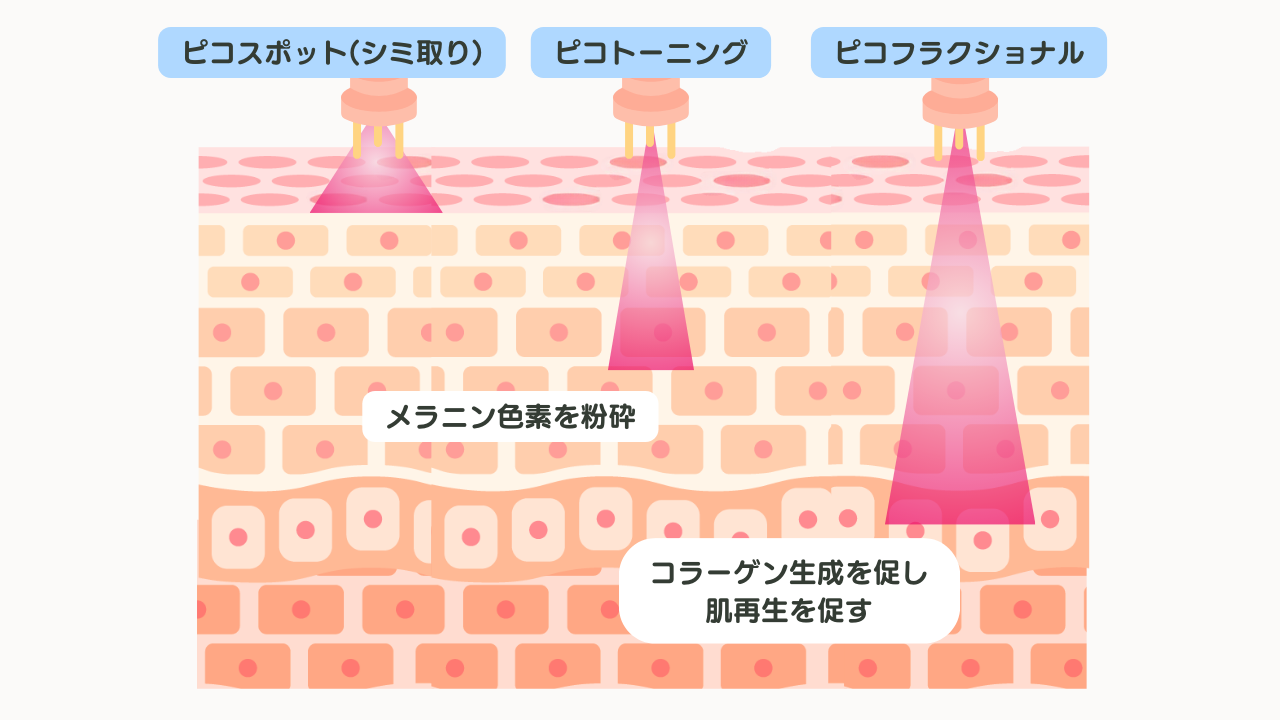 ピコトーニング/ピコフラクショナル/ピコスポットの違いは?