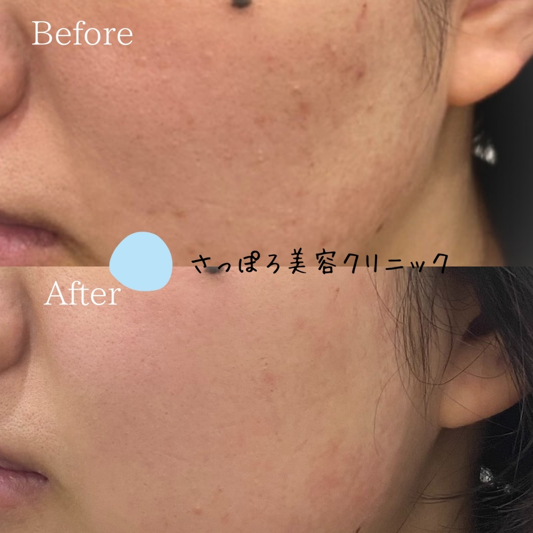 - 施術直後は、針の跡が点状に見えたり、赤み、内出血や腫れが生じることもありますが、ほとんどの場合、数日で消失します。