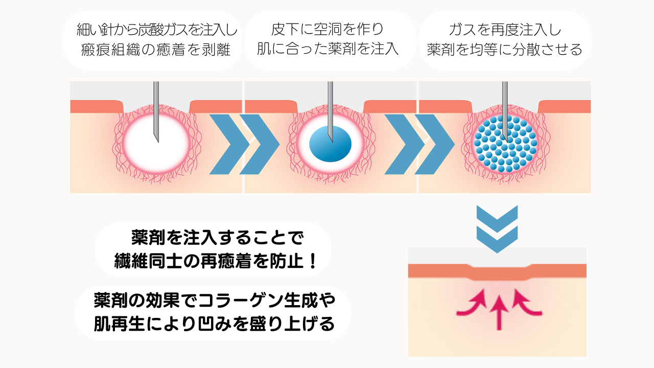 今まで諦めかけていた凹凸肌、傷跡に救世主!サブシジョン+ドラックデリバリーでふっくらなめらか肌へ。