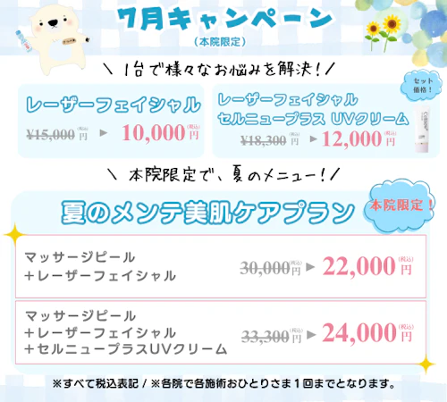 🏝️7月キャンペーン🏝️|<本院限定:夏のメンテ美肌ケアプラン>📍本院限定キャンペーン