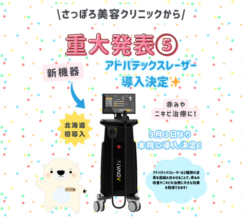 アドバテックスレーザーお試し照射 ※赤み、肌質改善1回ずつ可能です。