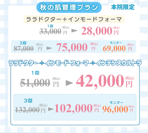 ※リピータ限定プランは過去に1度でも当院のグループで希望する施術を受けたことがある人に限ります。