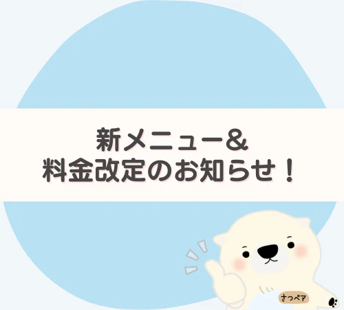 新メニュー導入&料金改定のお知らせ